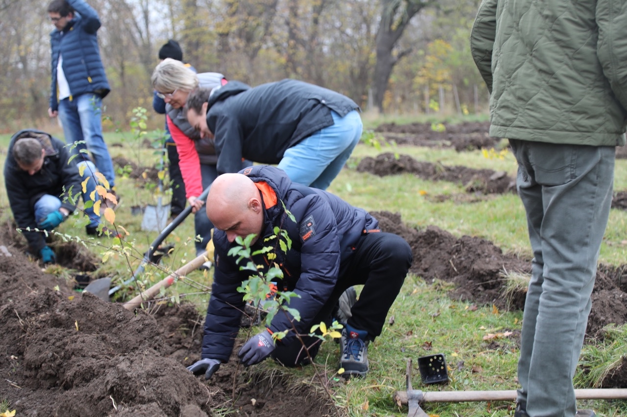 „Wer einen Baum pflanzt, glaubt an die Zukunft.“ Mit diesem positiven Gedanken eröffnete Sabine Wosche, Geschäftsführerin der LEG, die Baumpflanzaktion „Auenwald“ am Samstag. Es ist der zweite Pflanztag. Am Freitag, 14. November, hatten bereits 300 Schüler und Pädagogen Hand angelegt und geholfen, die jungen Setzlinge in die Erde zu bringen. Insgesamt 1.200 wurden an beiden Tagen gepflanzt und sie werden mit ihrer Entwicklung dazu einen Beitrag dazu leisten, das Klima positiv zu beeinflussen.