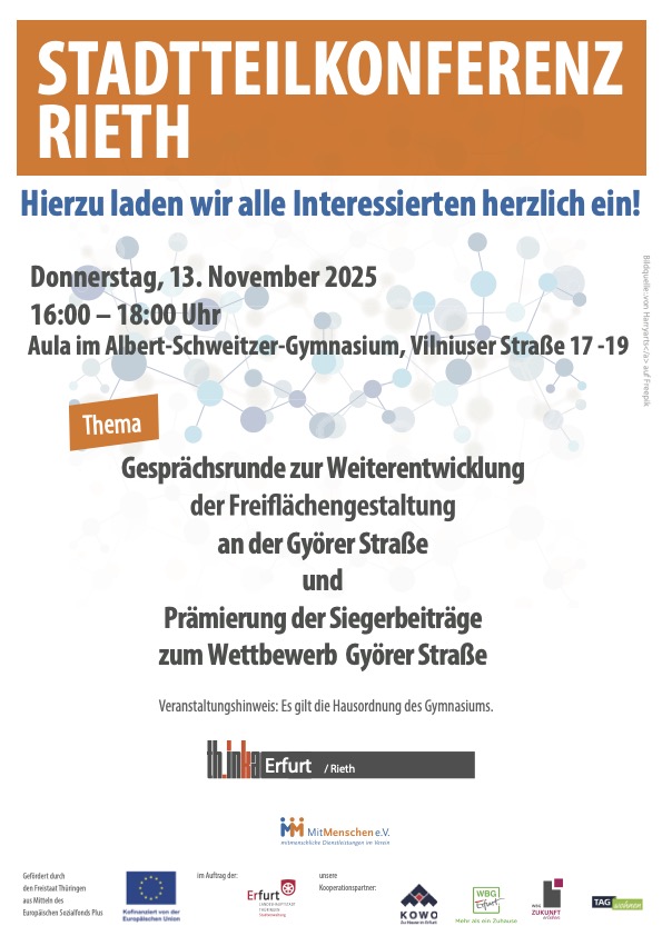 Anlässlich der Stadtteilkonferenz Roter Berg, zu der Ortsteilbürgermeisterin Marina Rothe am 23. Oktober geladen hat, war das Hauptthema die Eröffnung des neuen Einkaufszentrums. Investor Karl-Heinz Zehentner von der Zehentner & Seidel Immobiliengesellschaft aus Weimar bestätigte den zahlreich erschienenen Gästen der Konferenz, dass der 20. November der Tag der lang ersehnten Eröffnung sein wird. „Da beißt die Maus keinen Faden ab.“, bekräftigte er. Derzeit sei viel „action“ auf der Baustelle und das würde sich in den kommenden Wochen noch steigern, kündigte er an.