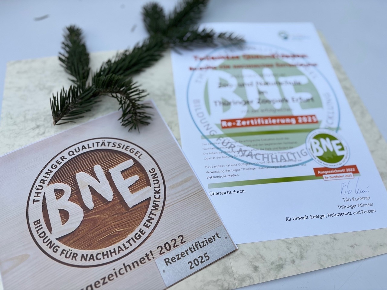 Der Zoo hat erneut das Thüringer Qualitätssiegel „Bildung für Nachhaltige Entwicklung“ (BNE) erhalten. Das Thüringer Umweltministerium würdigt damit die hochwertige Bildungsarbeit des Zoos und seine besondere Rolle als außerschulischer Lernort.