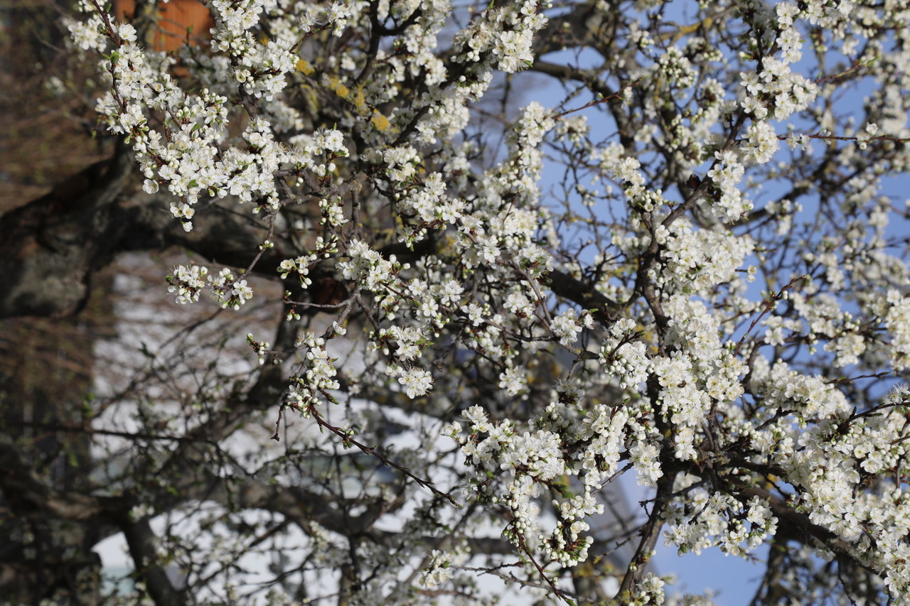 Der Ostersonntag verwöhnte mit blauem Himmel, Sonnenschein und frühlingshaften Temperaturen. Die Natur wartet gerade mit überbordend blühenden Bäumen und Sträuchern auf. Noch ist das Licht von Kühle geprägt, noch sind Wald und Flur mehr grau und braun als grün, doch dankbar nimmt das Auge die weißen, rosa und gelben Farbtupfer in der Landschaft auf.