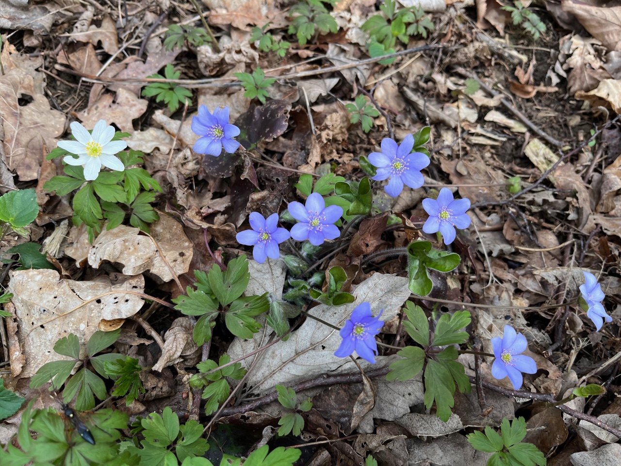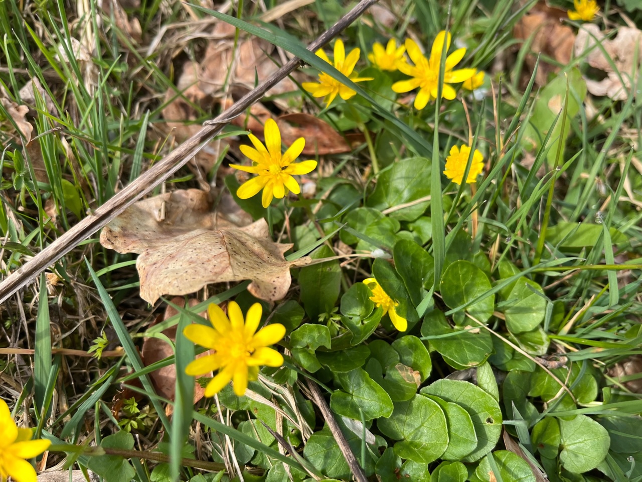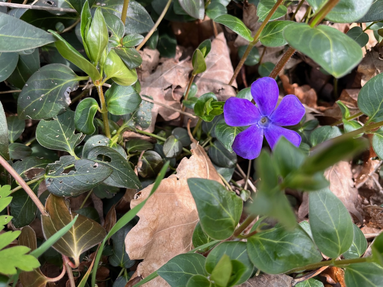 Zwischen welkem Laub recken sich die Blüten zum Licht.