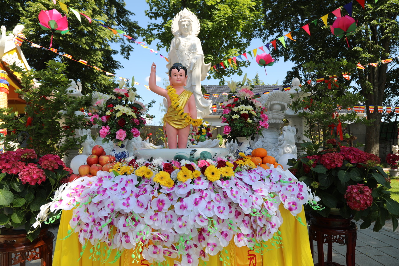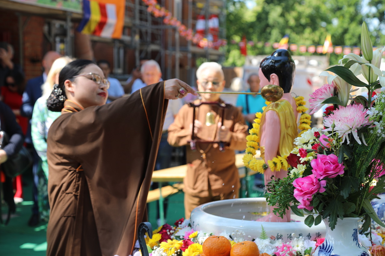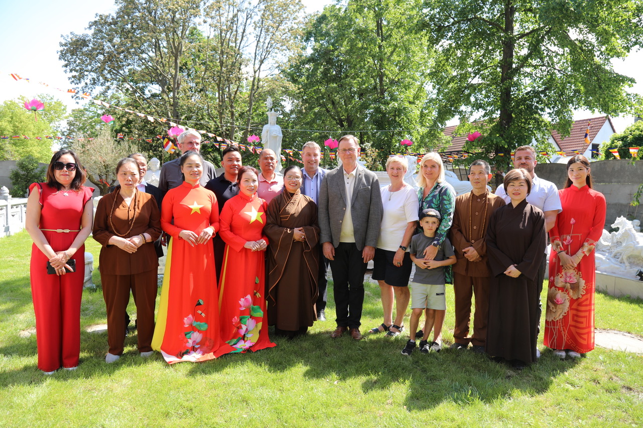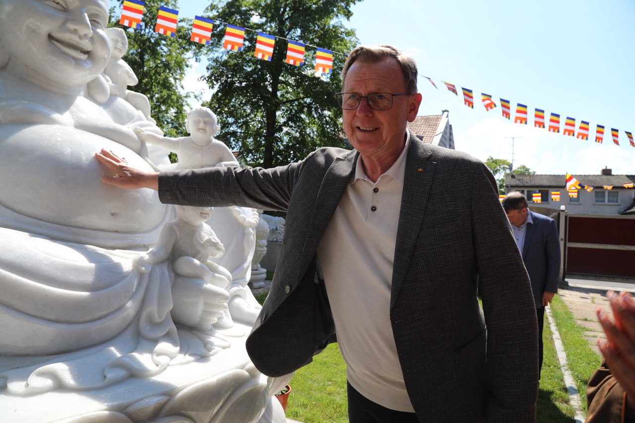 Mit einer friedvoll-freundlichen Zeremonie wurde die gestrige Besichtigung des künftigen Buddhistischen Tempels in Gisperleben mit Ministerpräsident Bodo Ramelow eröffnet. Der Tempel-Garten, der durch beeindruckende Buddha-Statuen den Lebensweg von der Geburt bis zum Tod symbolisiert, war reich mit Blüten und Früchten dekoriert, der Empfang sehr herzlich.