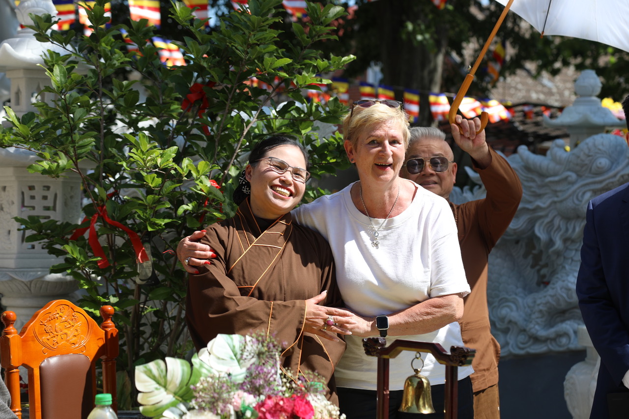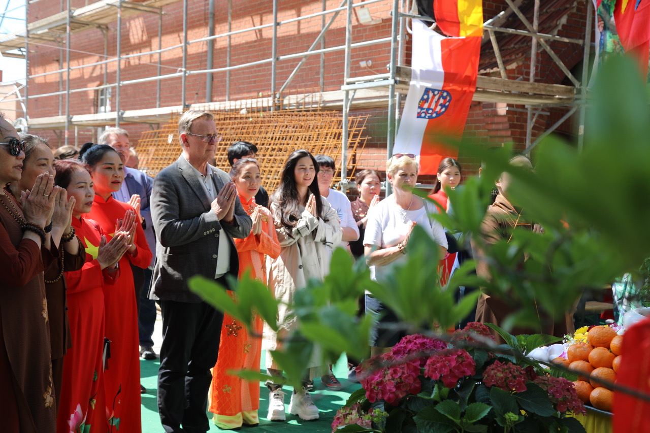 Zeremonie im Tempelgarten, zunächst von Huyen Tischler, dann von Ministerpräsident Ramelow und Ortsteilbürgermeisterin Anita Pietsch durchgeführt