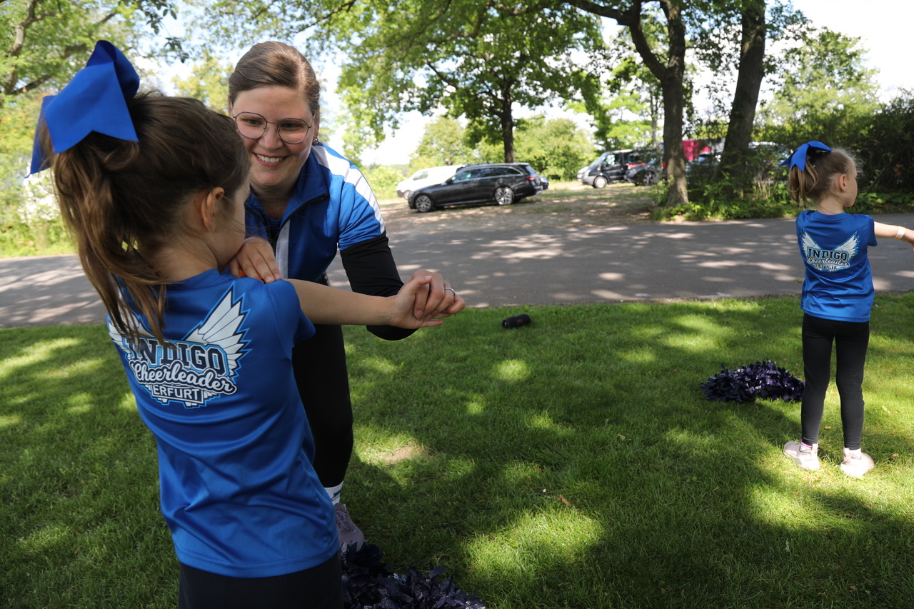 Letzte Instruktionen an die jüngsten Cheerleader vor dem Auftritt an der großen Bühne.
