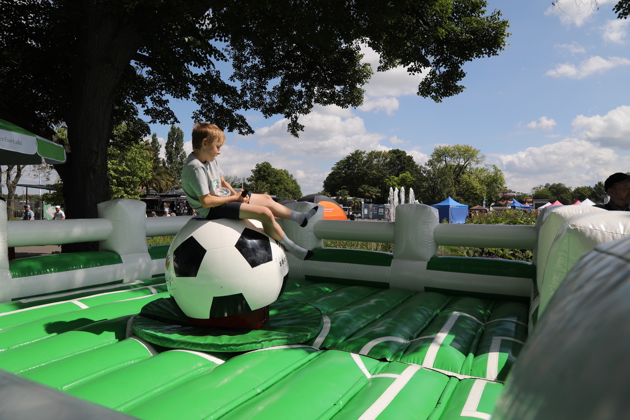 Live-Musik von Mr. Jam, Helene-Fischer-Double Berit Finke, Voice`n fun und Andreas-Gabalier-Double Tobi unterhielten die zahlreichen Gäste. Vereine präsentierten sich mit Sport-Acts oder – wie die Indigo-Cheerleader – auch auf der Bühne. Kinderprogramm in allen Variationen wurde geboten – Soccer, Bullriding im Fußballoutfit, Volleyball und vieles andere mehr standen den Festbesuchern offen. Wer sich in der Fahrrad-Rikscha der WBG Zukunft über das ega-Gelände chauffieren ließ, fand die wohl entspannteste Variante, um das traumhaft schöne Gelände zu erkunden.