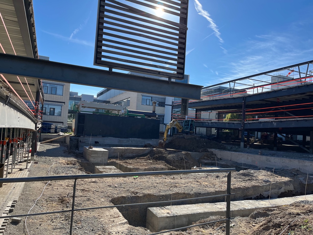 Ab 24. Juni wird das vor zwei Jahren eingestürzte Parkdeck des Helios-Klinikums erneuert. Bis zum 12. Juli 2024 sollen die Fertigteilelemente, die die beiden Einzelobjekte miteinander verbinden, eingehoben werden. Hierzu wird ein 100-Tonnen-Mobilkran aufgebaut, der die Elemente Stück für Stück einsetzen soll.