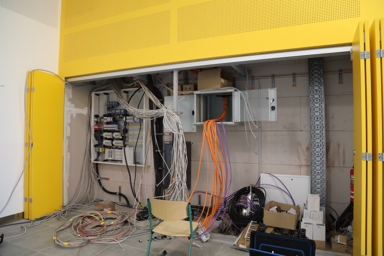 Mehr als ein Jahr lang ging es auf der Baustelle des Mensa-Anbaus der Riethschule nicht weiter. Jetzt setzt ein anderes Elektro-Unternehmen die ausstehenden Arbeiten fort. Das wird nach Auskunft der Handwerker mehrere Monate in Anspruch nehmen.
