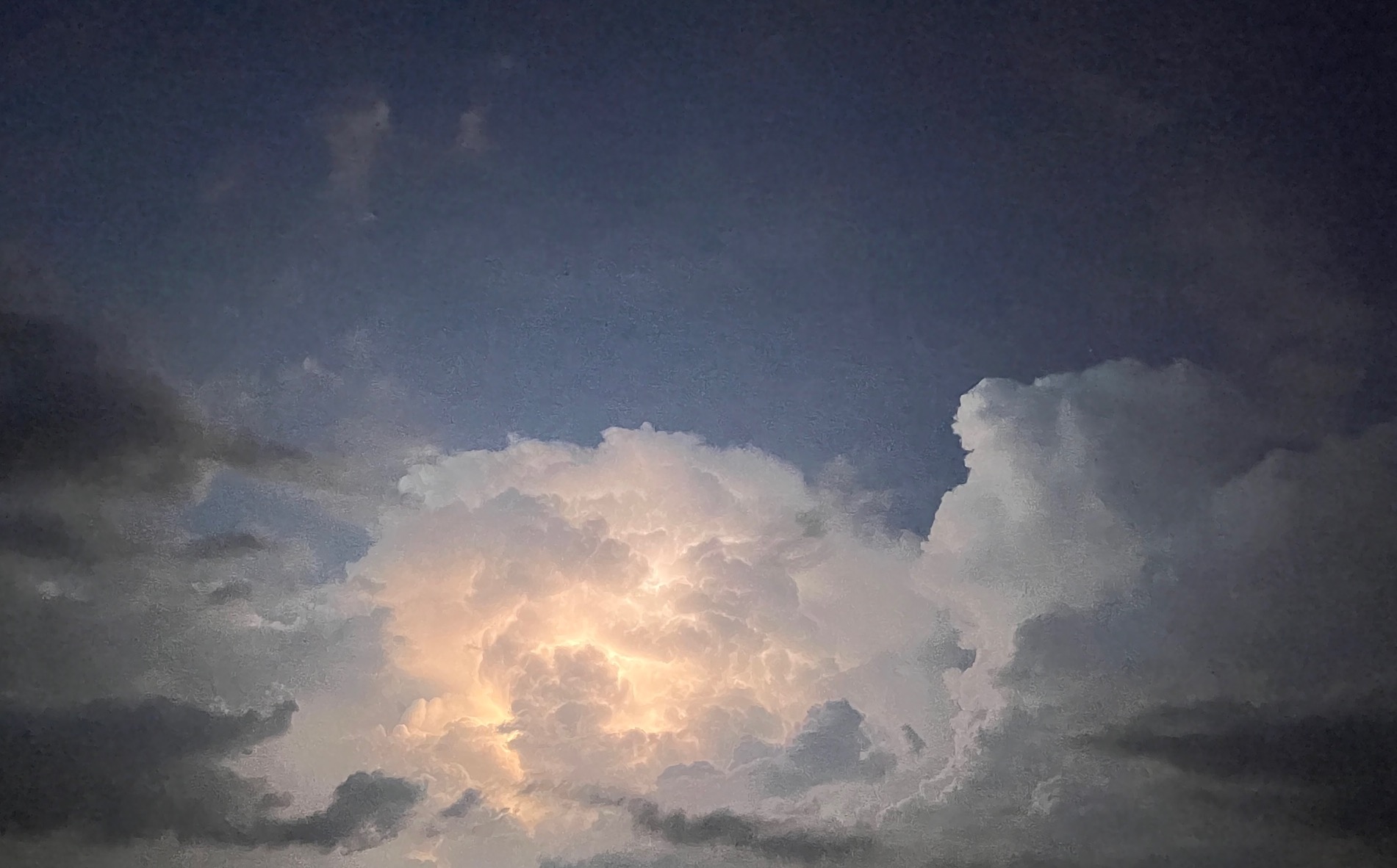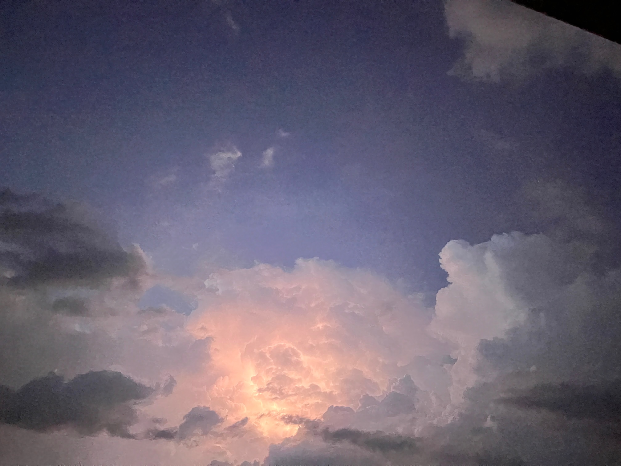 Nach der schwer erträglichen Schwüle des Tages konnte man am Himmel Gewitterzellen beobachten mit einem über recht lange Zeit andauernden Wetterleuchten. Die ersehnte Abkühlung und Regen gab es nur bedingt bzw. kurz.