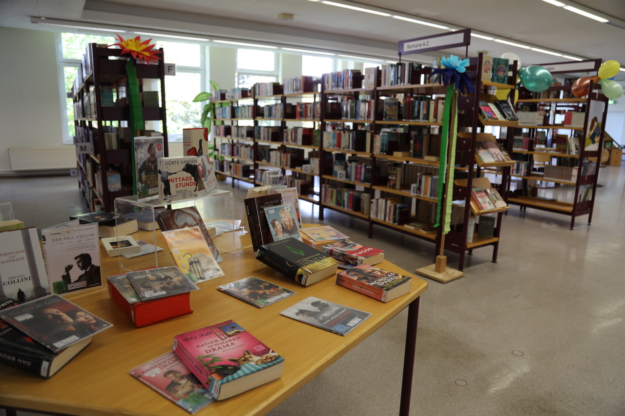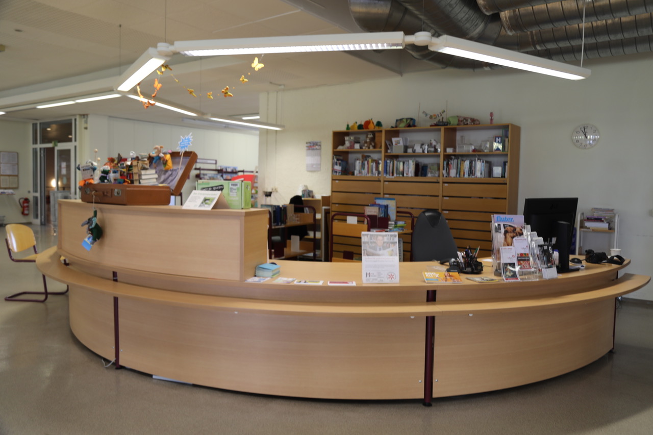 Rund 25.000 Medien, viele Romane, Fachliteratur für Schule, Beruf, Weiterbildung, Freizeit und Hobby, Bilderbücher und Comics, Spielfilme, CDs und DVDs, Spiele, eine große Auswahl an Zeitschriften und Zeitungen bietet die Bibliothek am Berliner Platz. Playstation und Switch ermöglichen digitales Spielen.