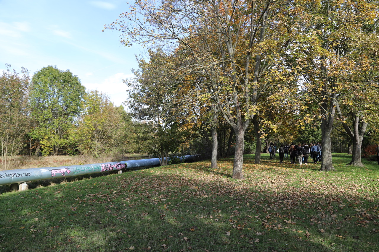 Hinter den Fernwärmerohren wuchert viel Grün. Das Schützt auch vor dem Verkehrslärm der Straße der Nationen.