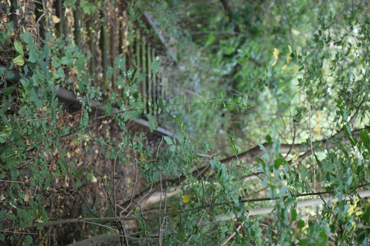 Überwucherte Bahngleise der einst hier verkehrenden „Riethschleuder"