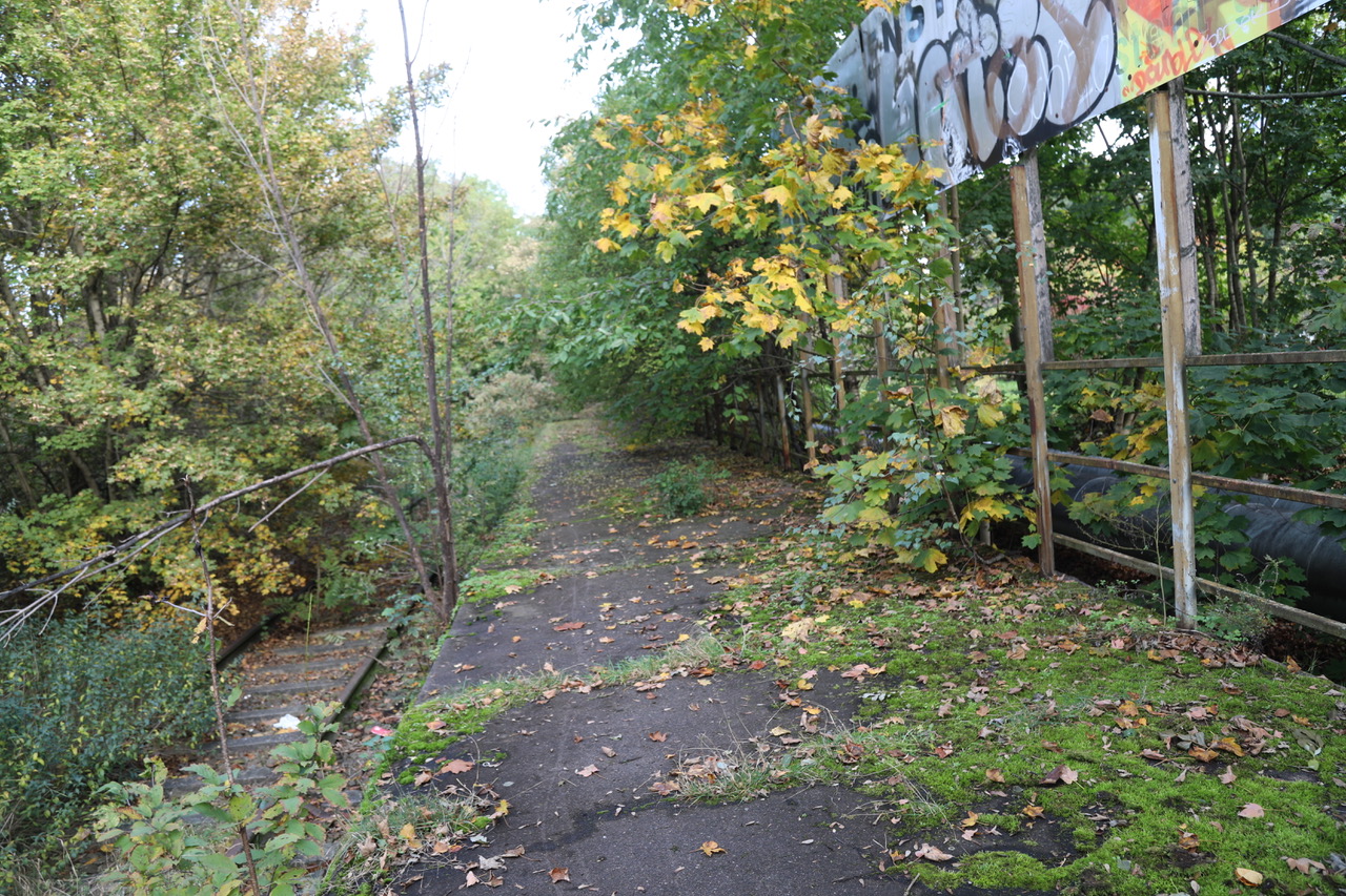 Der Bereich an der ehemaligen Bahnstation der „Riethschleuder“ in der Györer Straße hat einen morbiden Charme. Zu den Wohngebäuden hin sind die Grünflächen attraktiv und gepflegt, den relativ schmalen Streifen entlang der alten Bahntrasse hat sich die Natur in den letzten drei Jahrzehnten zurückgeholt.