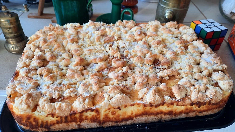 Boden/Streusel: 250g weiche Butter, 150g Zucker, 3 Vanillezucker, 1 Ei, 1 Backpulver, 450g Mehl