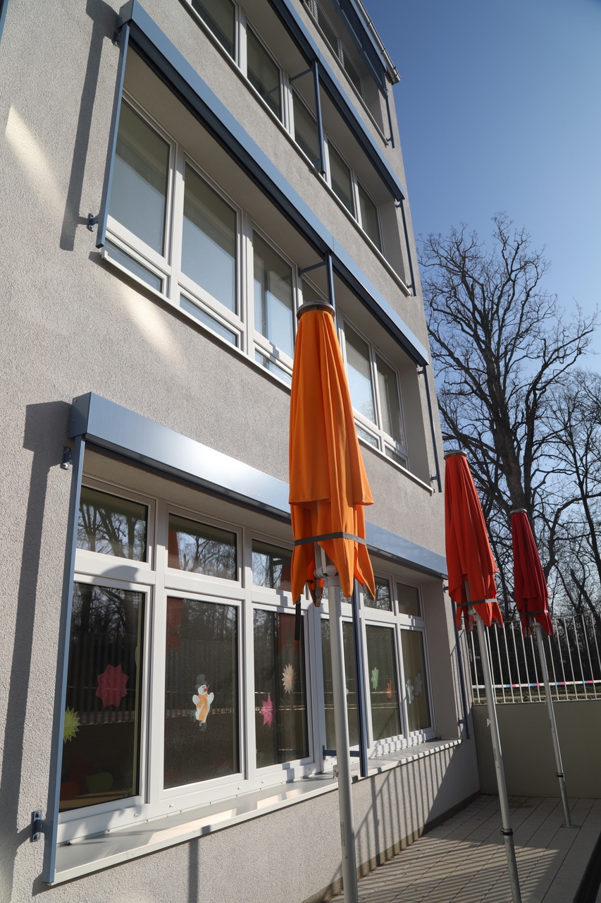 Mit einem üppig großen Außengelände, dessen Neugestaltung voranschreitet, bieten sich zudem unzählige Optionen, dem natürlichen Bewegungsdrang der Kinder Rechnung zu tragen. Auch ein neuer, schuleigener kleiner Sportplatz soll in das Areal integriert werden.