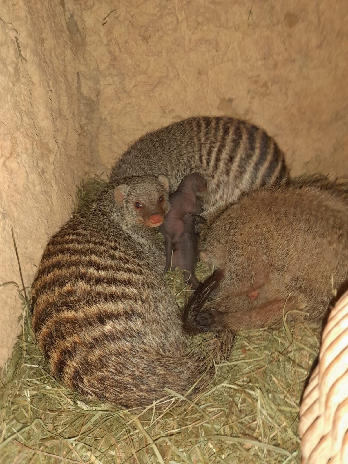 Am 4. April kamen fünf Mangusten-Junge im Erfurter Zoopark zur Welt. Bei der Jungtierversorgung unterstützen sich Zebramangusten gegenseitig. In der Regel gebären die Muttertiere einer Gruppe im gleichen Zeitraum und säugen auch die Jungen der anderen.