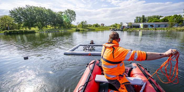Ein fünfköpfiges Team positionierte die rund 400 Kilogramm schwere Konstruktion per Boot und befestigte sie an den vorhandenen Betonankern auf dem Teichgrund. Dafür waren auch Arbeiten im Wasser erforderlich. Nach Abschluss der Montage nahm die Pumpe den Betrieb auf – sie lässt nun täglich zwischen 8 und 21 Uhr mehrere Fontänen bis zu acht Meter hoch in die Luft steigen. Jetzt kann man an den Wochenenden auch wieder das Kiosk-Angebot auf der Terrasse des Freiraum `22 / Café am See (bei nicht so schönem Wetter auch Indoor) genießen. Den schönen An- bzw. Ausblick auf den Teich mit Wasserspiel gibts aber die ganze Woche.
