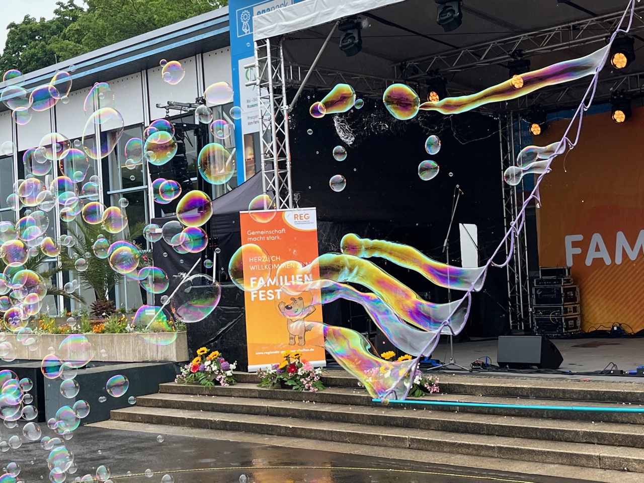 Hüpfburgen aller Couleur luden die Kids ein, die Fahrrad-Rikscha der WBG Zukunft chauffierte Festbesucher übers ega-Gelände. Die Angebote an Spiel, Spaß und Unterhaltung waren vielfältig.
