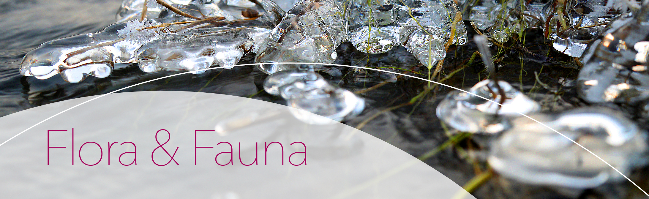 Zugefrorener Auenteich und glitzernde Eiskristalle