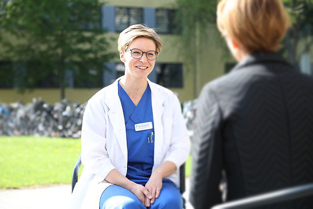 Bevor wir uns auf Tour durch das Klinikum begeben, sitzen wir zunächst in der Cafeteria des modernen Gebäudes und erleben eine Ärztin, die in ihrem Beruf aufgeht und sich mit dem Klinikum identifiziert. „Ich fühle mich wohl in diesem Haus.“, sagt sie mit Überzeugung. Wir wollen wissen, wie ihr Weg bis hierher verlief.